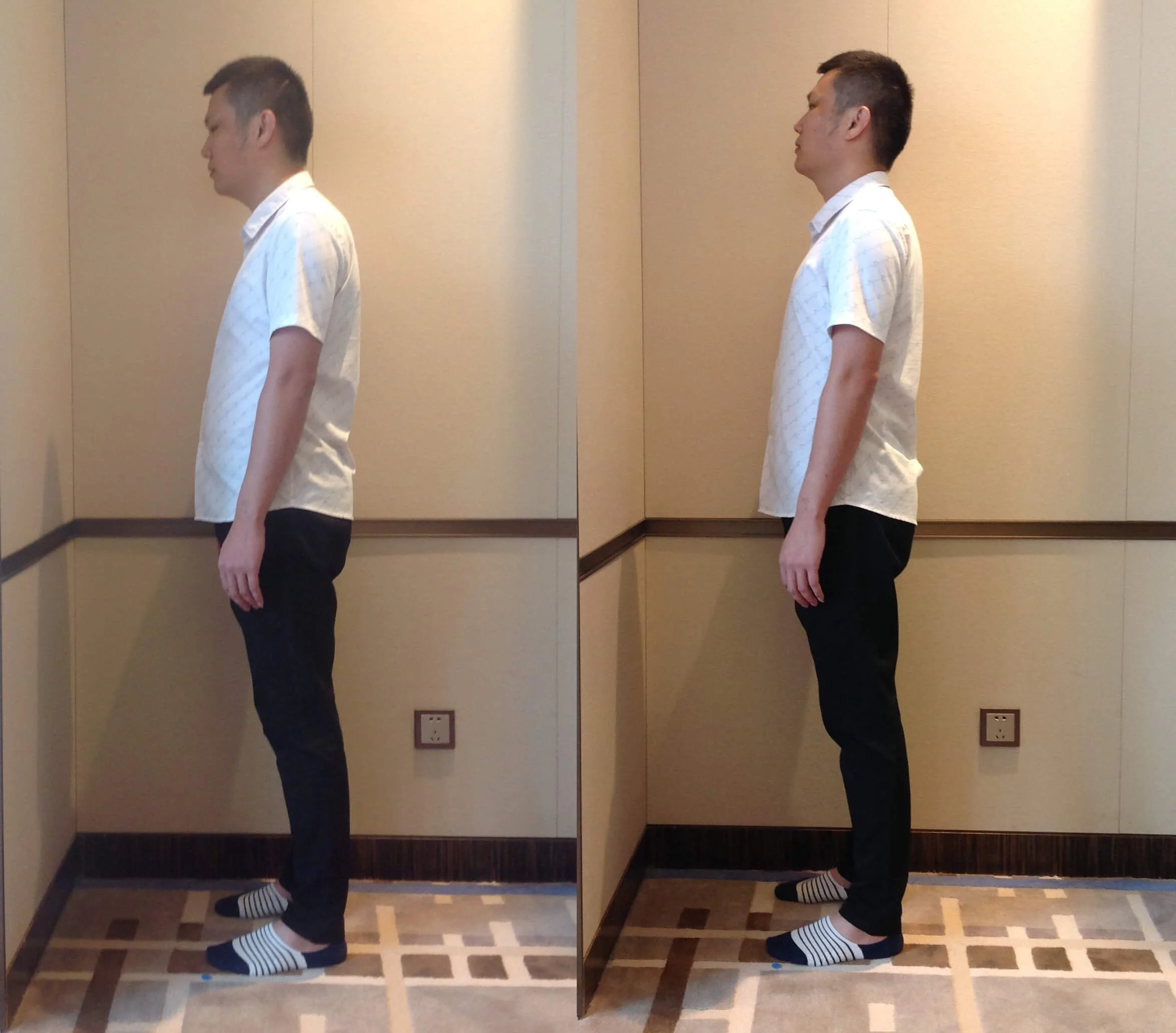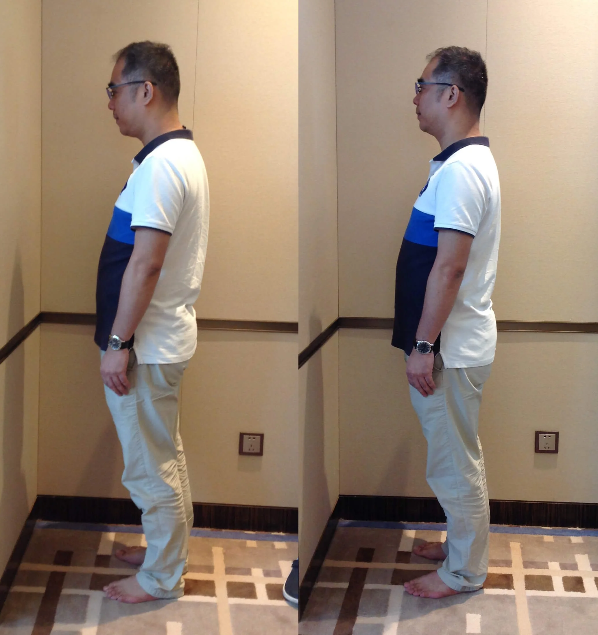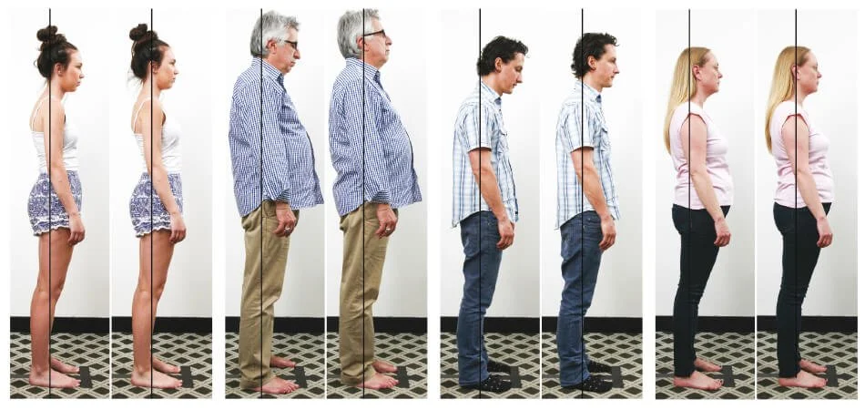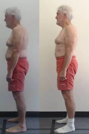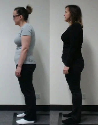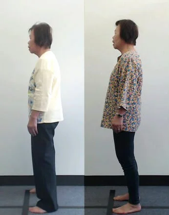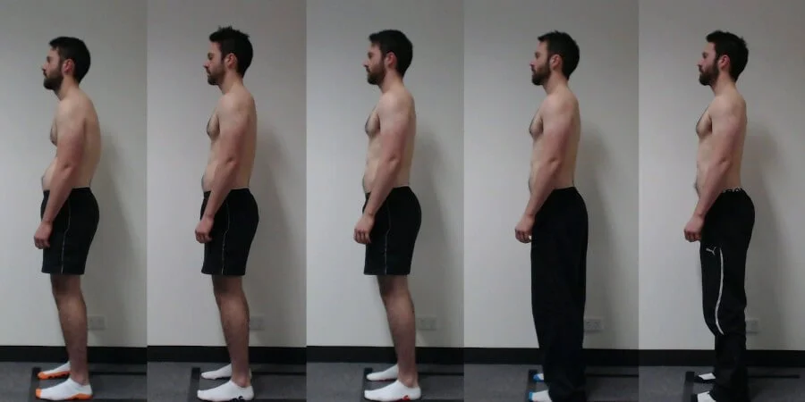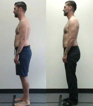DISCLAIMER: Postural change is not guaranteed. Results may vary from person to person. Postural change shown in the images below typically occurs over a period of weeks. Furthermore, all photos are taken with the instructions “breathe in then breathe out, relax and let your body slump” with a fixed camera and consistent patient feet position.